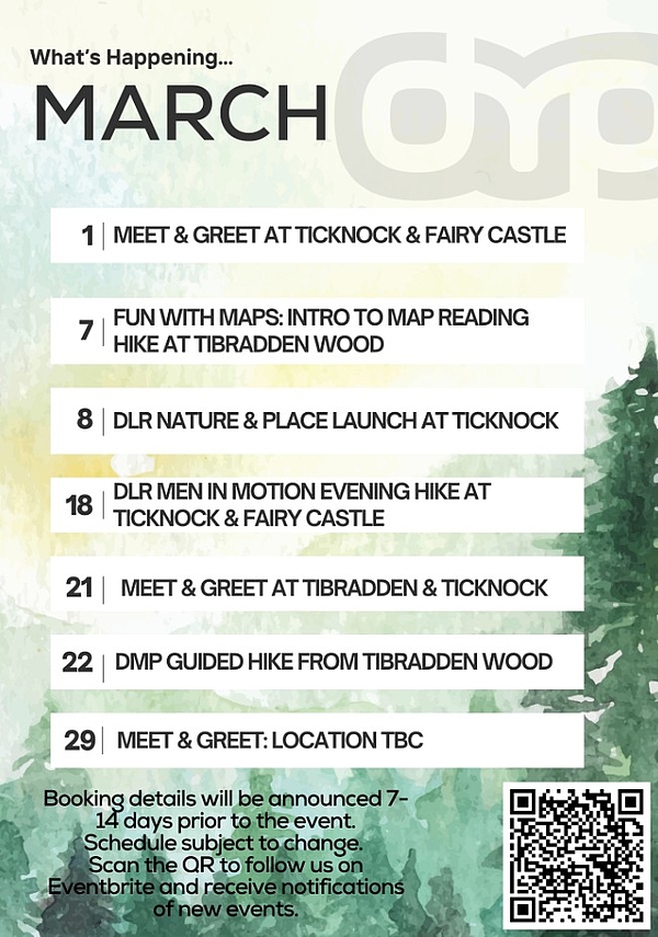 October 10th: World Mental Health Day Hike from Shankill to Carrickgollogan with DLR Sports Partnership and the DMP Volunteer Rangers, booking is via Eventbrite. This is a free event.